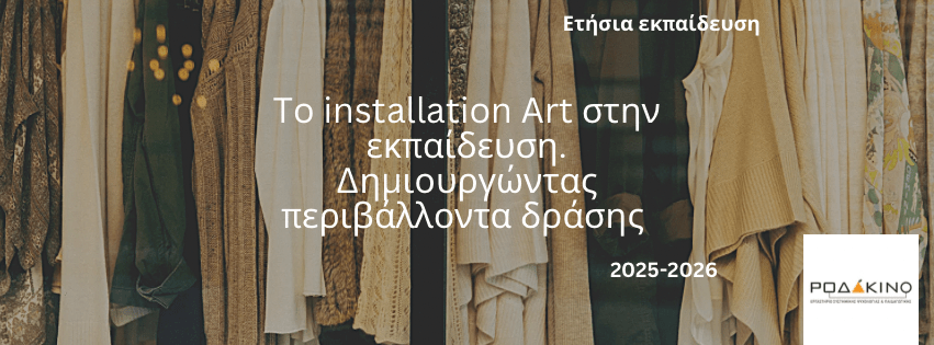 Το Εργαστήριο Συστημικής Ψυχολογίας και Παιδαγωγικής Ροδάκινο και το Atelier Ροδάκινο ανακοινώνει την πραγματοποίηση ετήσιου εκπαιδευτικού προγράμματος καλλιτεχνικής εκπαίδευσης συνολικής διάρκειας 80 ωρών (60 ώρες βιωματικής εκπαίδευσης+20 ώρες μελέτη) με θέμα: Η τέχνη της εγκατάστασης (installation Art) στην εκπαίδευση.